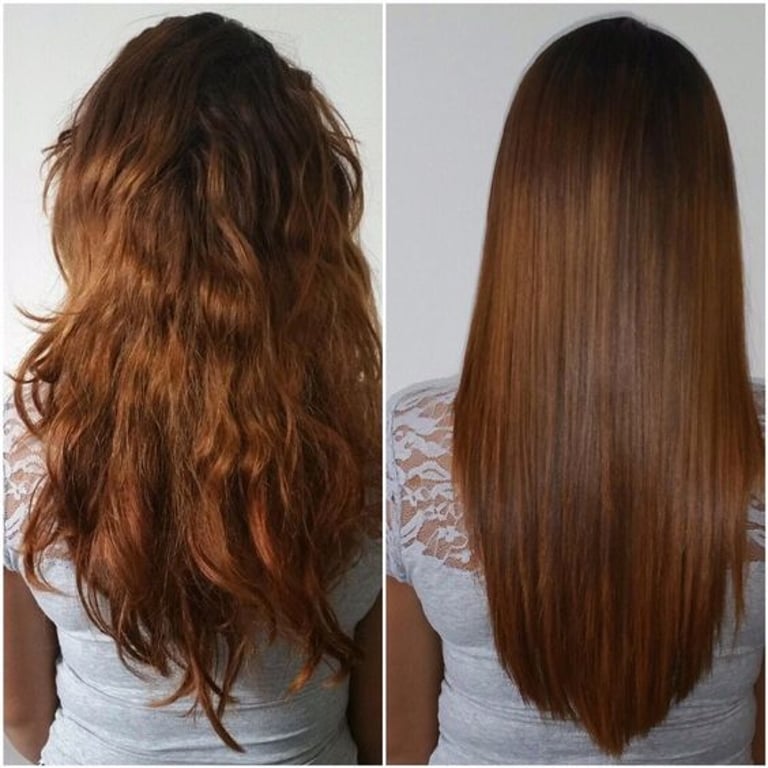 O resultado pode variar conforme o tipo de fio. Em cabelos ondulados e com frizz, o alinhamento e a redução de volume são visíveis já na primeira aplicação. Em fios mais resistentes, o efeito é de maior disciplina e facilidade na finalização.